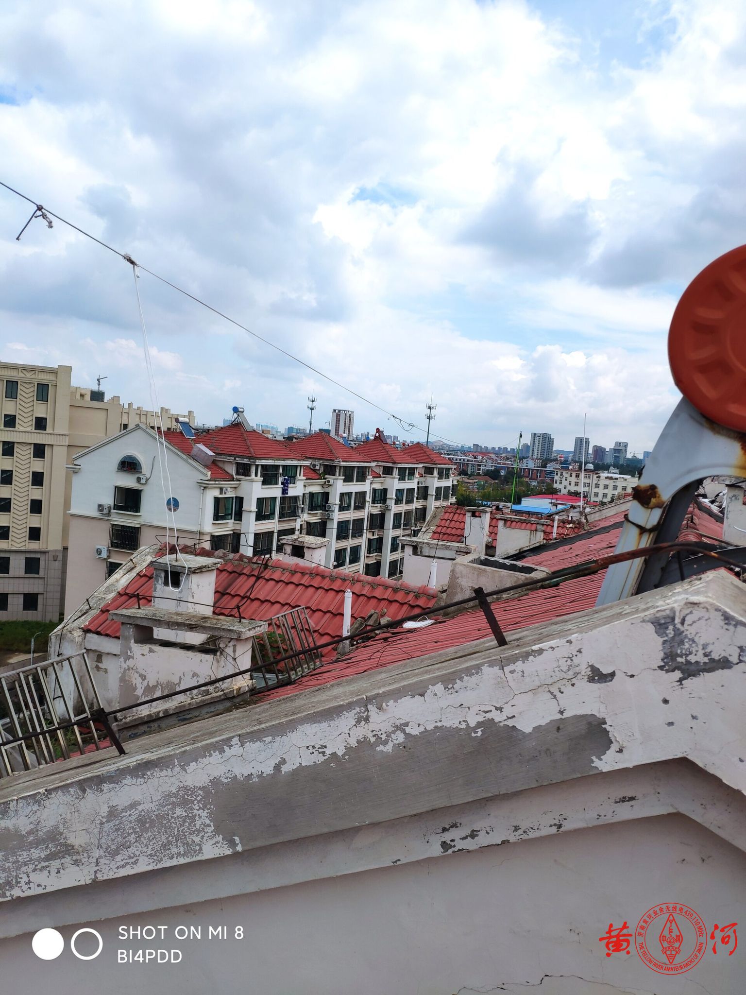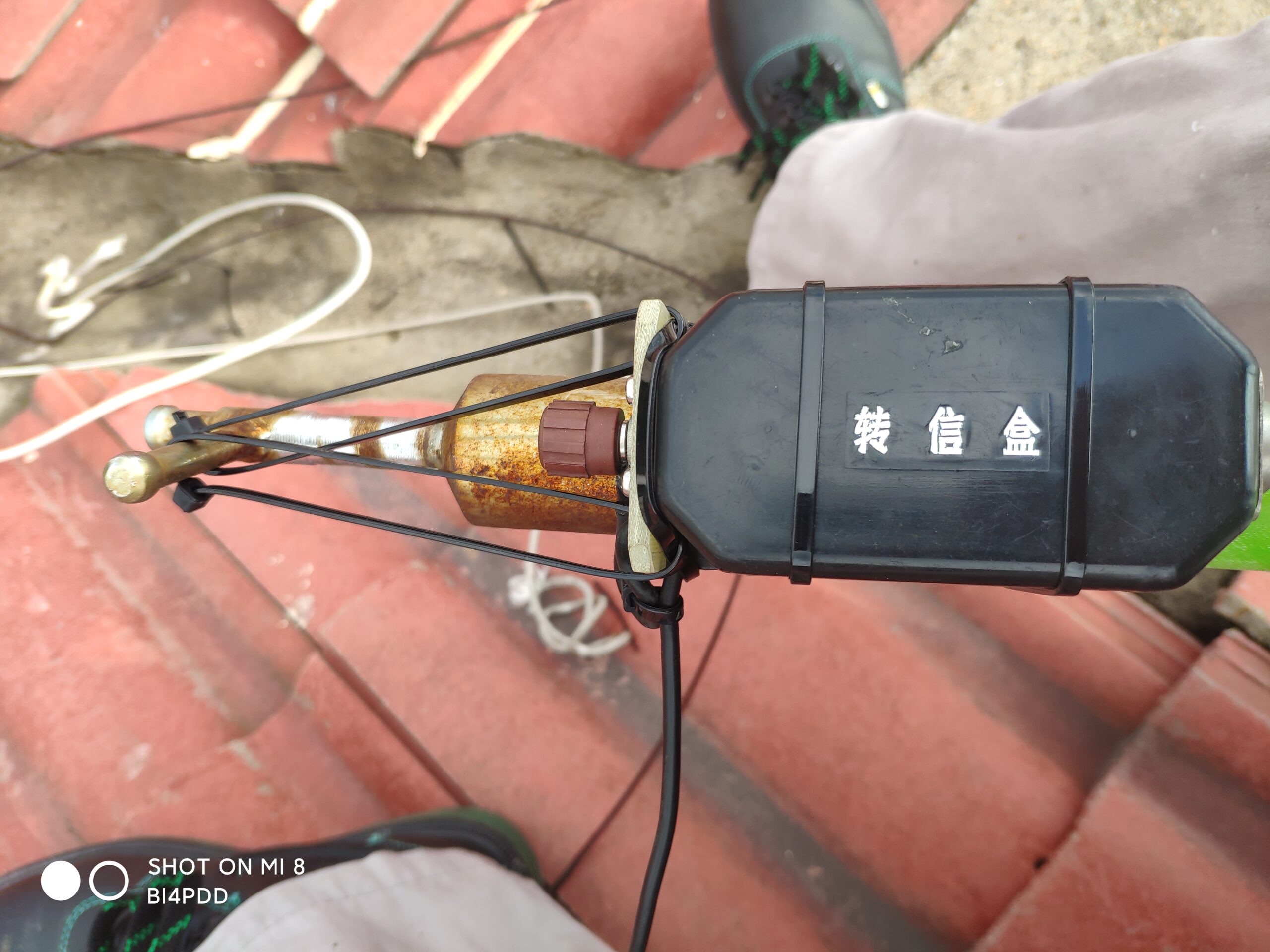 熟悉青岛的朋友都知道九月的青岛“秋老虎”余威尚在,中午天气还是比较热的,我特意选择在比较热的10点之后出来安装,主要是考虑到小区里无处不在的大妈们,这个时间段大妈们回家避暑,正好可以少一些质疑,能给自己少点麻烦。于是我在家换好长衣长裤,戴好帽子。准备了手套,矿泉水,梯子跟天线以及必要的工具。