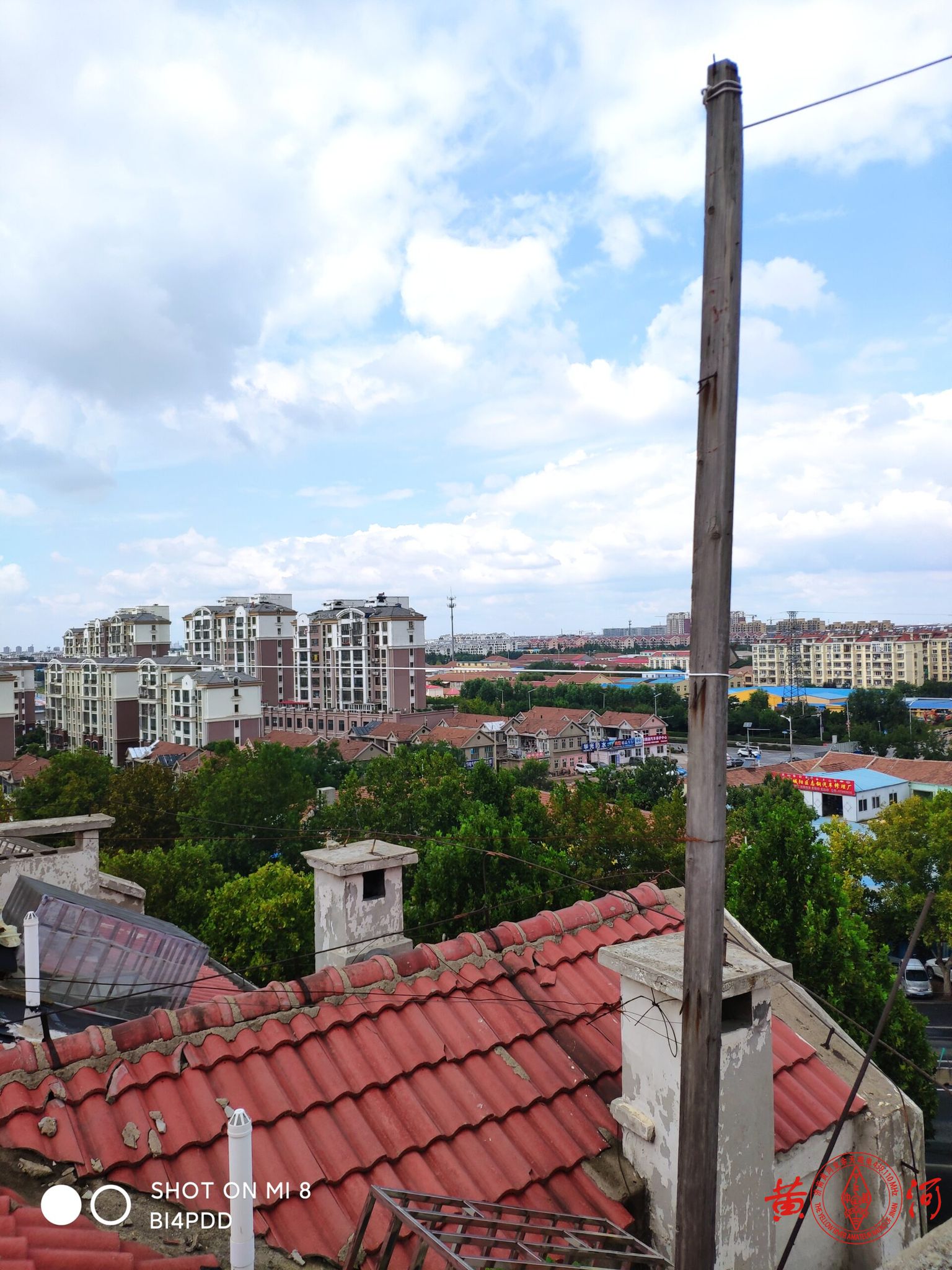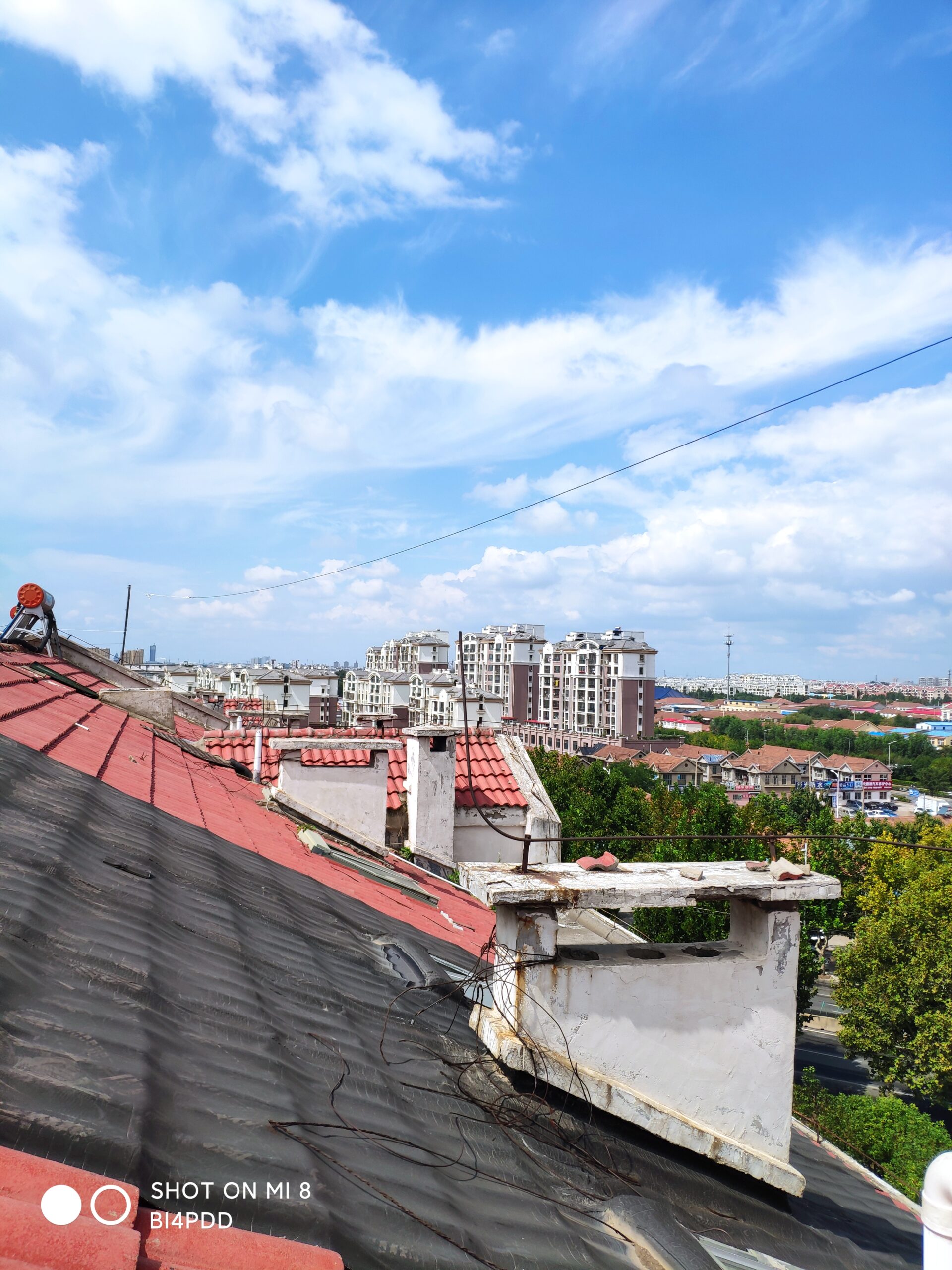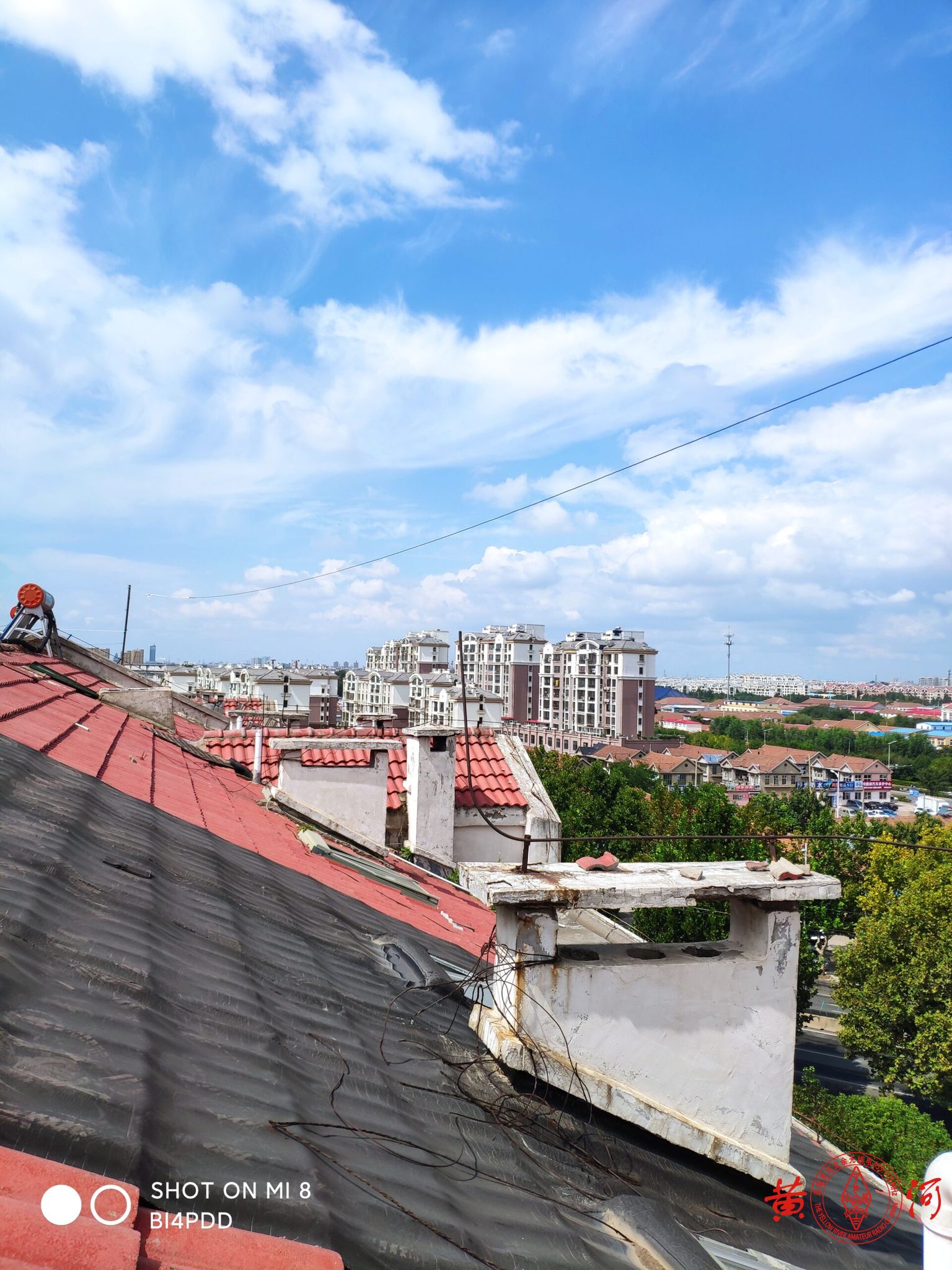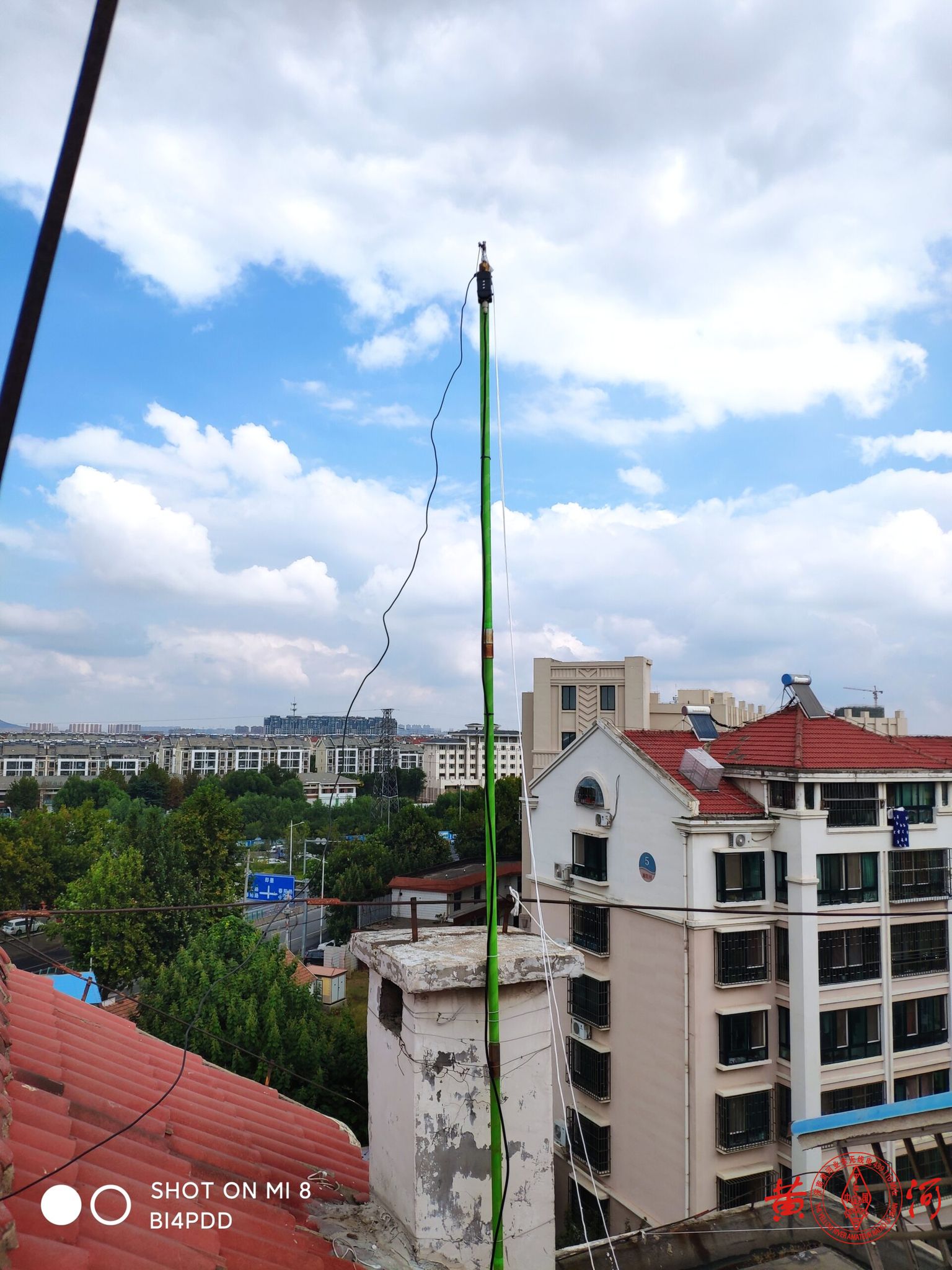 今天是个礼拜天,天气秋高气爽。本来准备周六架设的天线,因为一场雷阵雨而搁浅放到了今天。此天线是我上次架设的端馈天线的改进版本,上个天线经历了一年多的风吹雨淋,天线本身长度发生了变化,驻波比已经破三。借着上个月小区物业处理过期太阳能机会,让我拆了下来。