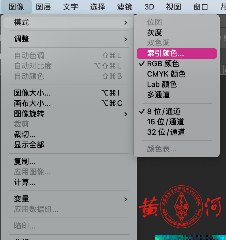 我们如果在之前跳过索引颜色这一步的话,那么我们将没法选择8位这个选项(划重点!)