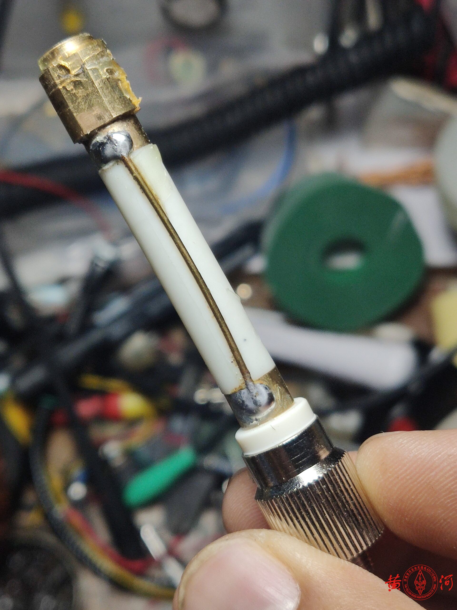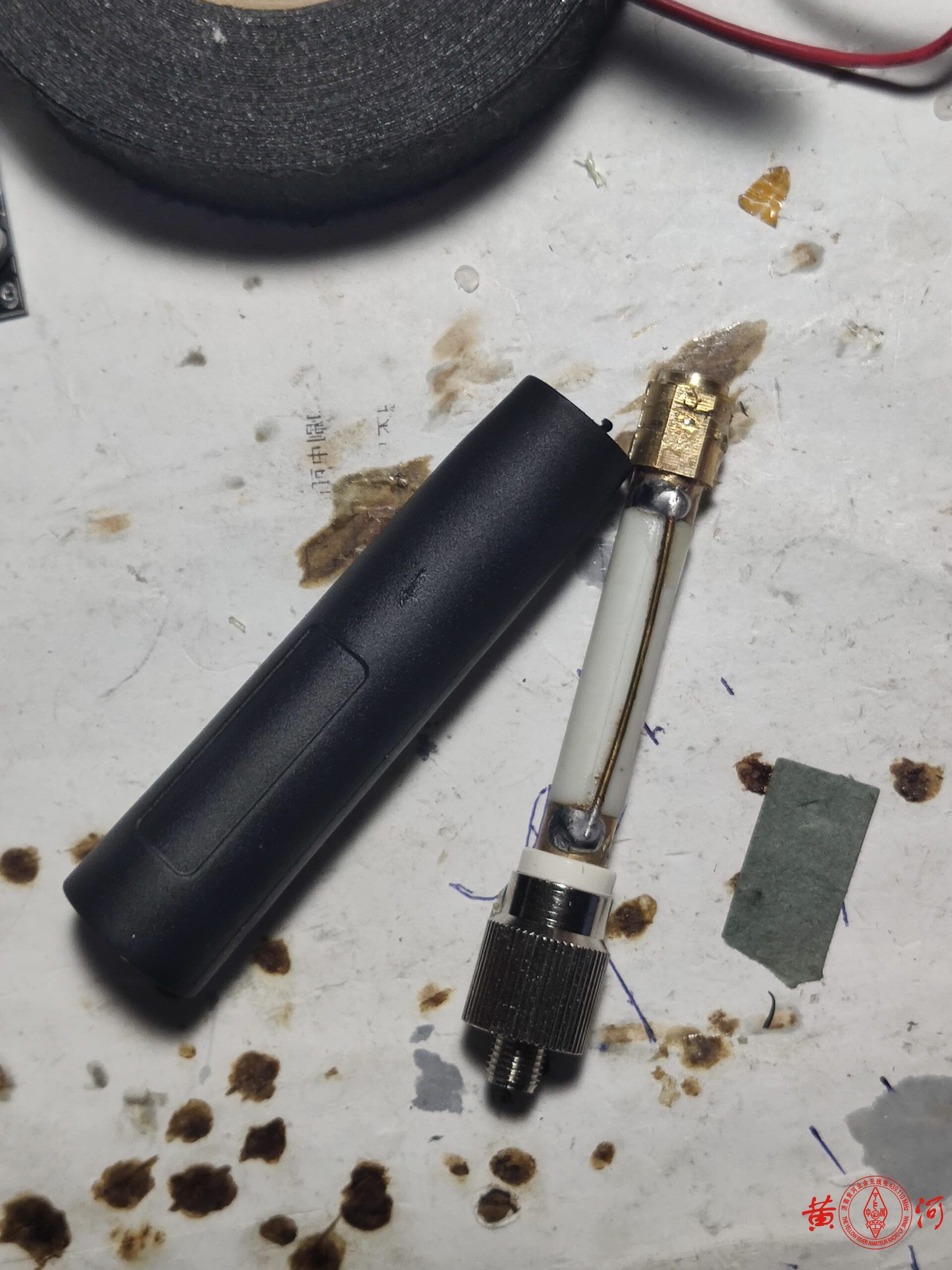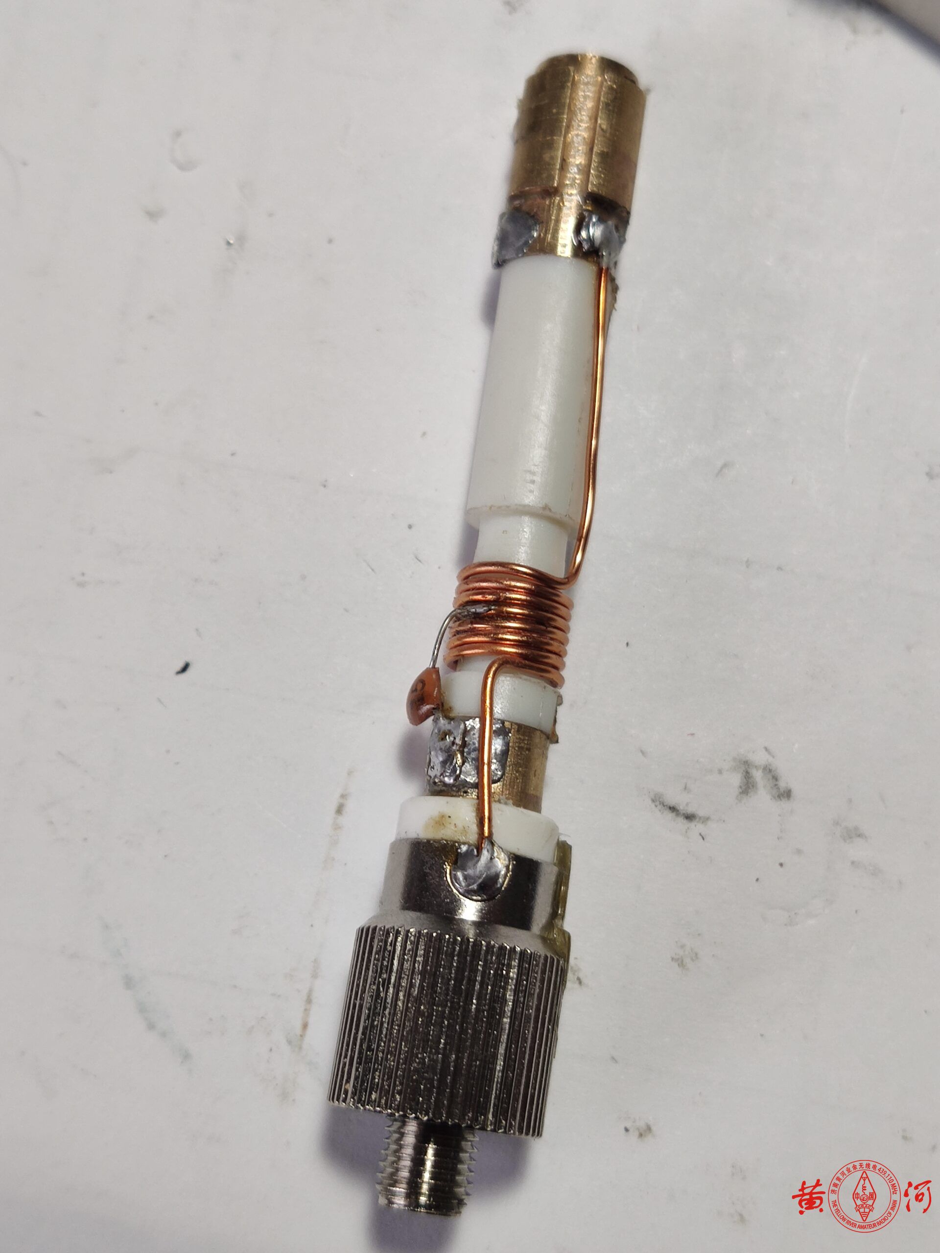 接上天分或网络分析仪测试修剪天线辐射体长度,如果没有天文,那就从线圈上端测量384MM,基本问题不大。
