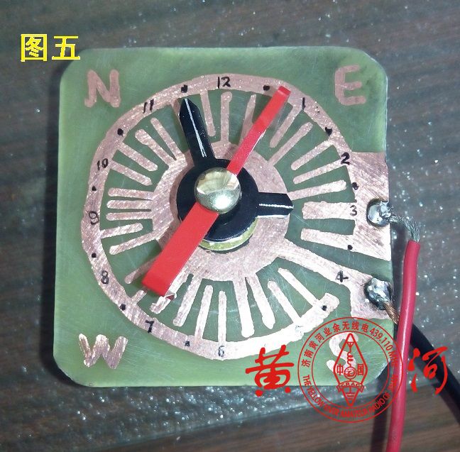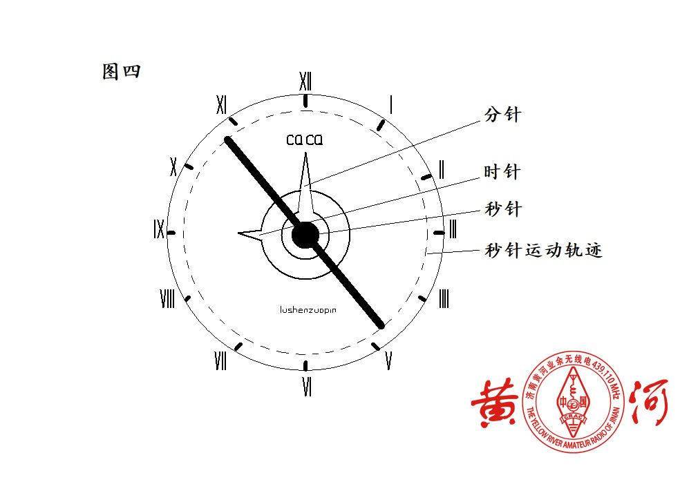 电子钟机芯最好不用步进型的。动手能力强的朋友可以参考图四示意,自制秒针、分针和时针,再绘制一张合适的表盘(确切说是两个环状表盘,本例中小环外圈直径不大于24毫米,内圈稍微大于安装孔直径,大环的内圈直径不小于32毫米,外圈直径以适合刻度即可)。表盘的直径大小,分针、时针的长短不要影响秒针的运行即可(本例中,秒针的运动轨迹半径在13-15毫米)。让这个装置平时是钟,用时发码,会更合心意。以下链接是本装置的实验视频:机械式自动电码