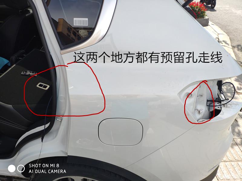 6-机头至尾箱走馈线。拆下门槛扣板沿缝隙走线至做后门,左后坐放到有预留扣板孔,拆下可走线至后尾灯(里面有海绵填充,建议用8#线串线引过去,这里也是需要巧劲,不是笔直的通道。)