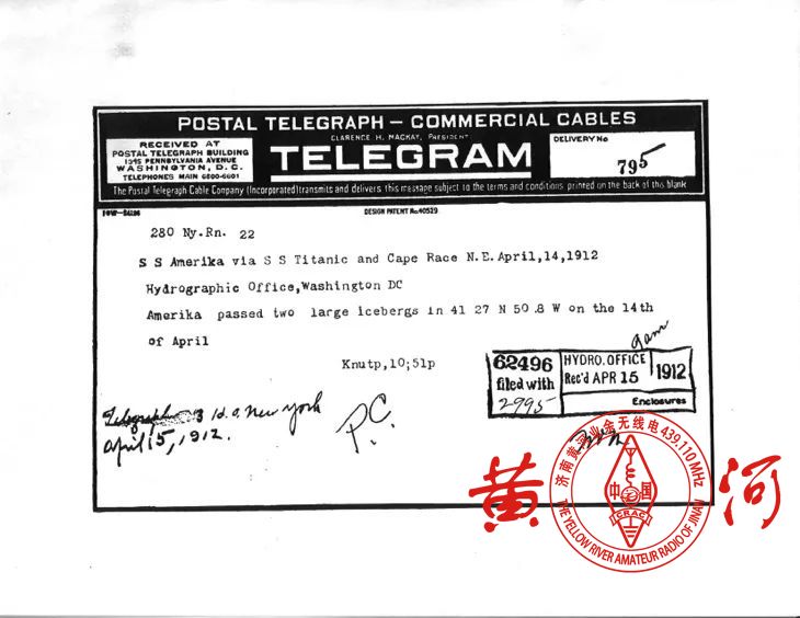 泰坦尼克号转发了关于两座大冰山位置的电报丨YvesRenard/WikiCommons