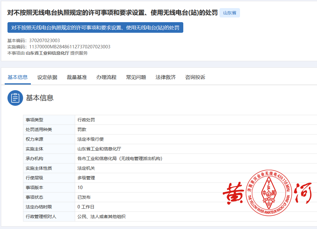 《山东省无线电管理条例》 地方性法规 山东省人民代表大会常务委员会 2018年7月通过,2020年7月修正 第四十九条:“违反本条例规定,为他人擅自设置、使用无线电台(站)提供场所、设备的,由无线电管理机构责令改正;拒不改正的,没收违法所得,可以并处五千元以上三万元以下的罚款。”