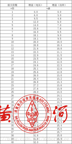 那么多少分贝等于放大多少倍呢?看下面表,注意表里有两个值,一个是功率值得比较,一个是电压值的比较,对于我们来说,可以以功率值倍率作为参考,因为我们的电台发射能力强弱是以功率比较的,比如25W电台、40W电台等等。