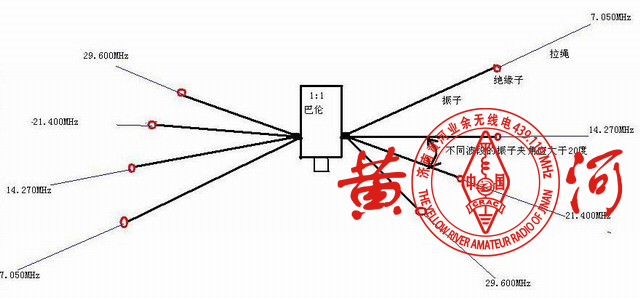 用这个方法调整:7.05MHz 14.270MHz 21.400MHz 29.6MHz 使其驻波最低.. 7.05MHz 14.270MHz 缩短系数是0.94