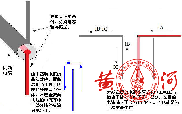 不接巴伦就会造成馈线屏蔽层的外皮产生向下的电流(即图中的电流IC),有电流就会产生幅射,而且会造成电台带电,即使电台接地也解决不了电缆屏蔽层的幅射问题,就会产生电磁干扰。