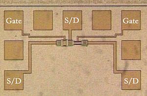 金属氧化物半导体场效晶体管(简称:金氧半场效晶体管;英语:Metal-Oxide-Semiconductor Field-Effect Transistor,缩写:MOSFET),是一种可以广泛使用在模拟电路与数字电路的场效晶体管。金属氧化物半导体场效应管依照其沟道极性的不同,可分为电子占多数的N沟道型与空穴占多数的P沟道型,通常被称为N型金氧半场效晶体管(NMOSFET)与P型金氧半场效晶体管(PMOSFET)。
