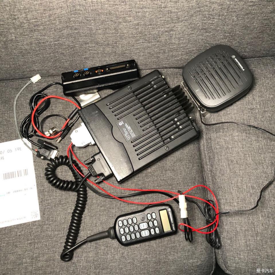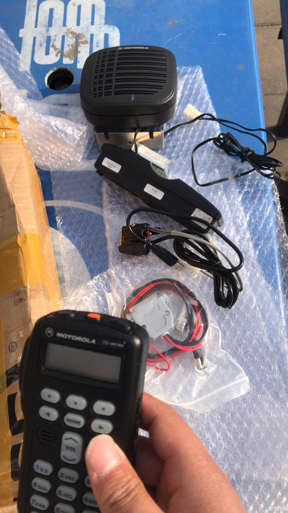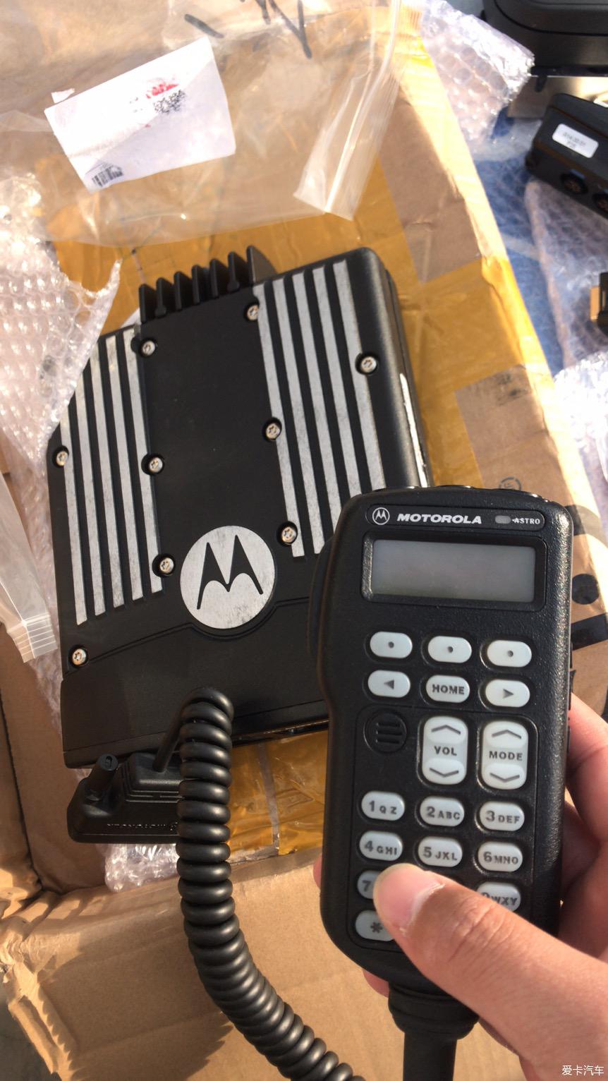 这是卖家发的照片,摩托罗拉XTL5000,48W,U段,不能手置频,稍微有点不方便。摩托罗拉的大喇叭声音很给力,可惜没用上,因为我想把喇叭放在座椅下边,这样车里看起来就不那么乱了。