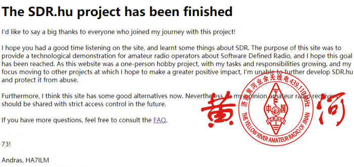 软件定义无线电网站 sdr.hu 宣布关闭,站长给出的理由是这是一个个人业余爱好项目,他的关注点现在转移到了其他项目,既没有精力继续维护网站,也无法防止其被滥用。“防止被滥用”更像是一个来自当局施压的结果,许多人怀疑站长是在压力下被迫关闭的。