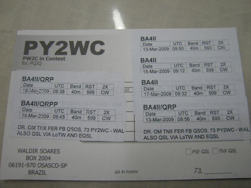 这是巴西火腿寄过来的,我用QRPp,0.8瓦通联的QSL卡片。