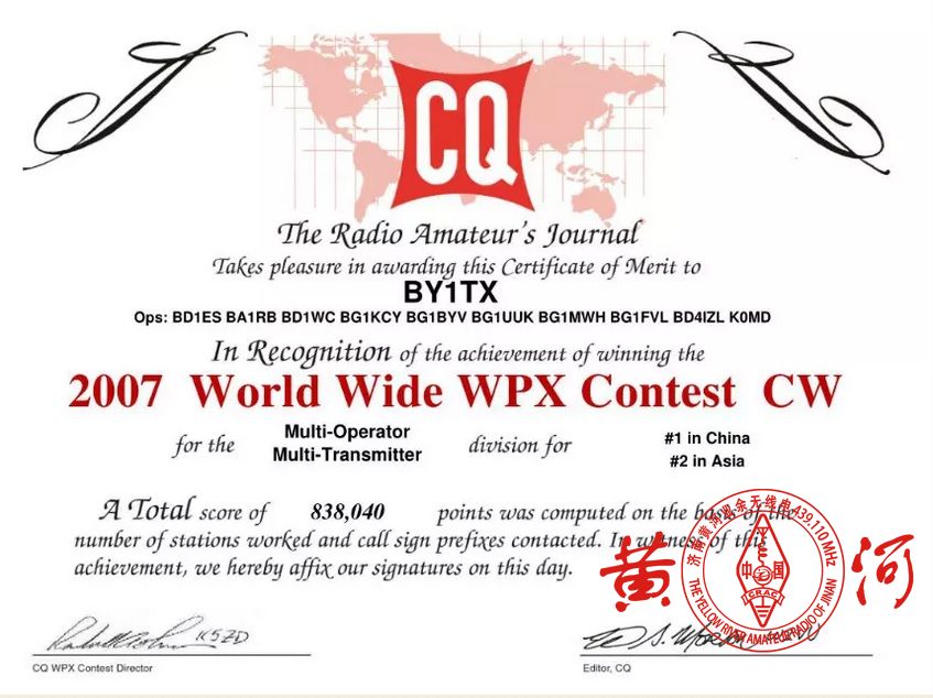 2008年参加国际CQWW-CW比赛,获得中国第一名,可惜奖状找不到了。