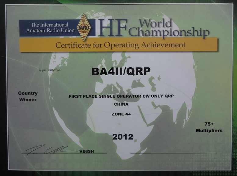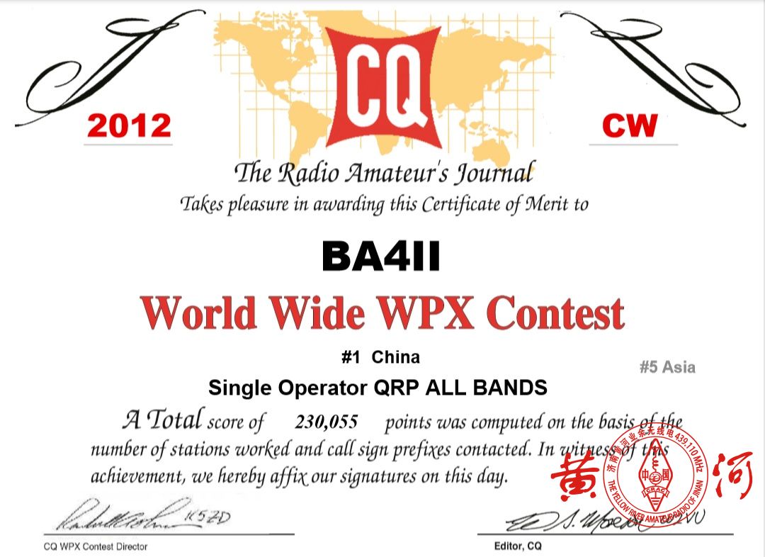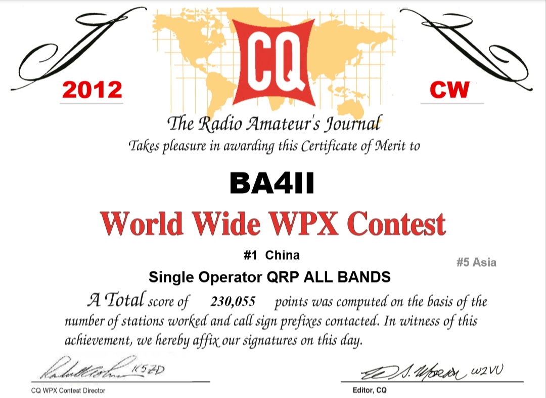 这是我参加2012年国际CQWW-WPX比赛,QRP组中国第一的成绩。