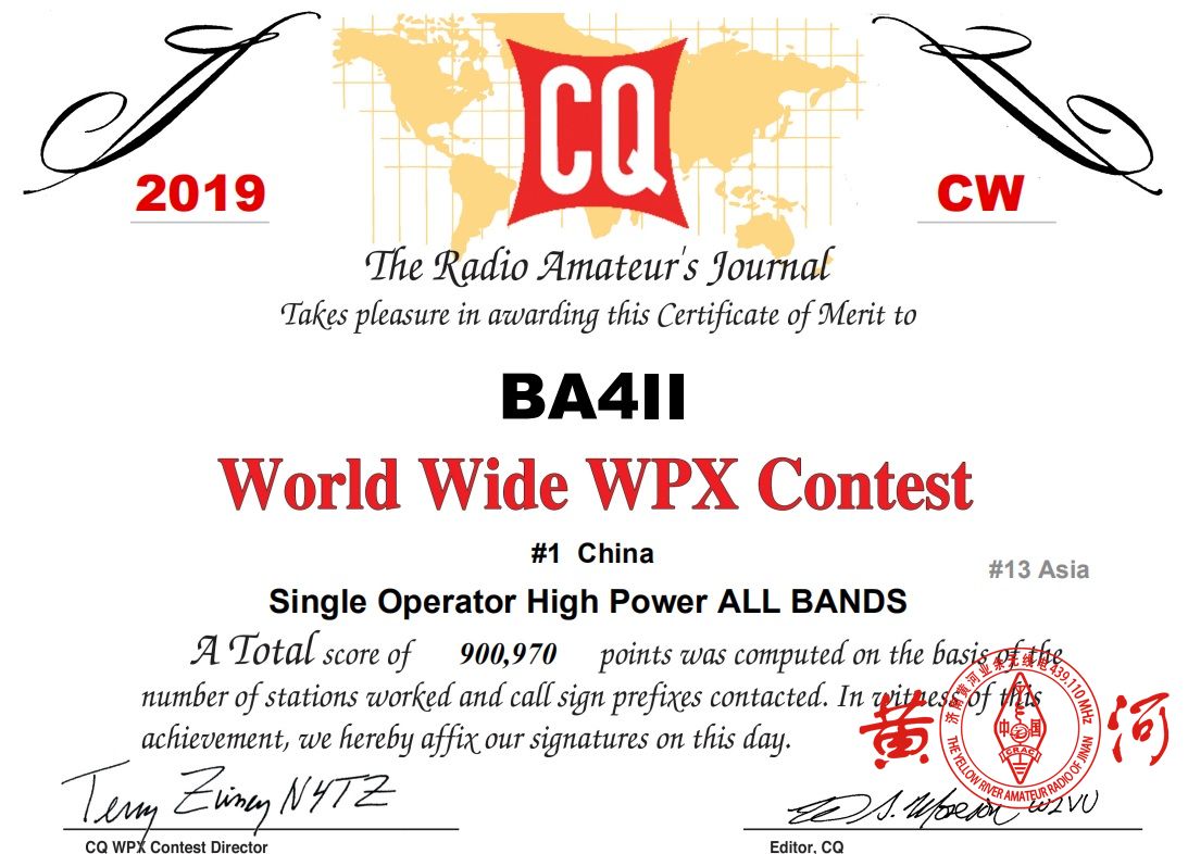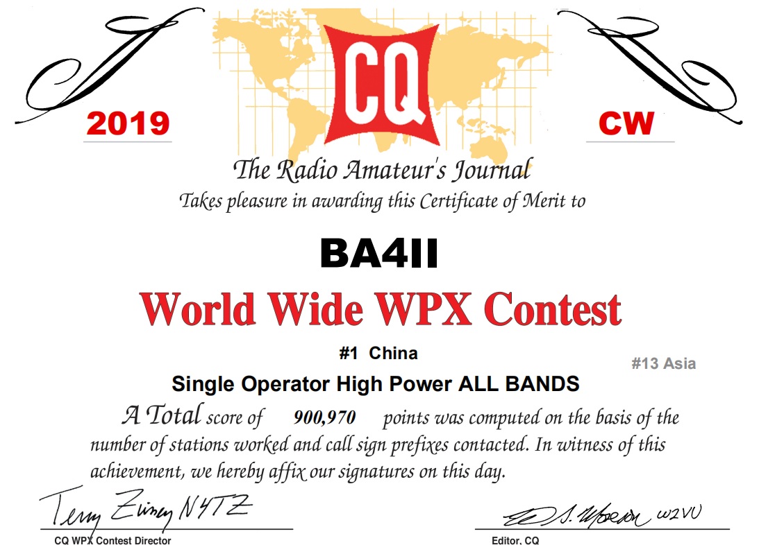 这是我在济阳HAM基地参加2019年国际CQWW-WPX比赛,高功率全波段组获得中国第一名的成绩。