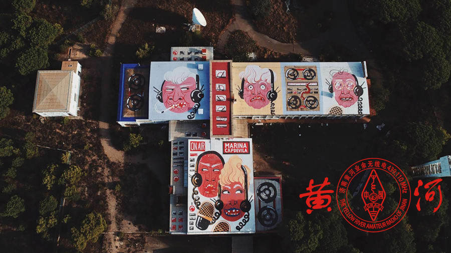 2018年夏天,她在自由电台主楼的屋顶工作了12天。画了一幅引人注目的、色彩丰富的壁画,占地约2000平方米。
