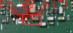 上图电路板上面的覆铜线 从中间割断。边割边测它们的通路状态,注意不要割太深。板子有中间层